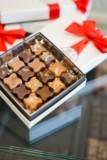 Boïte de chocolat noir et lait, ganache et praliné