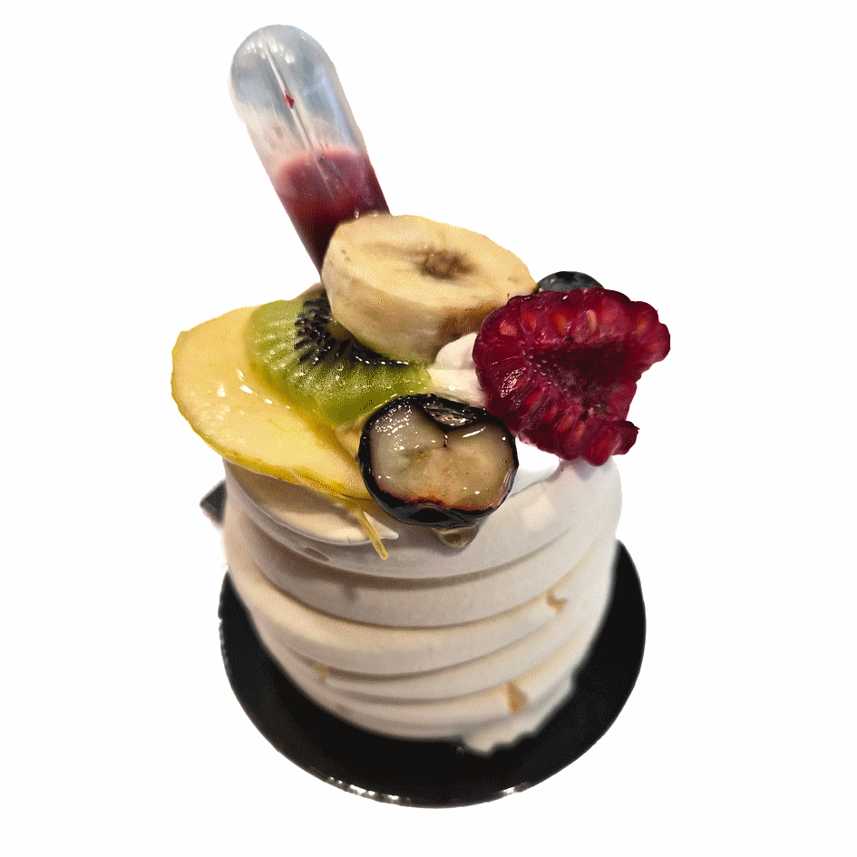 Meringue française, chantilly non sucrée, compotes de pommes, fruits de saisons