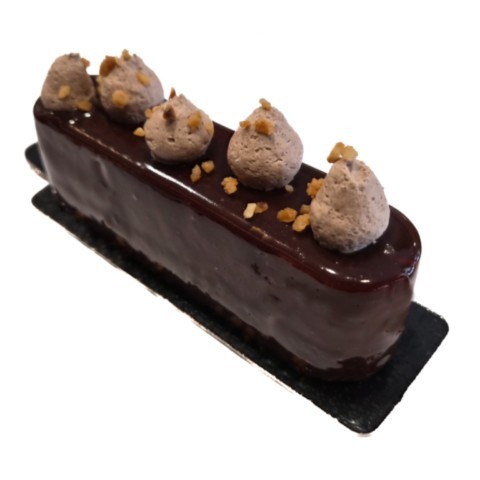 Mousse légère au chocolat noir, croustillant feuilletine praliné et biscuit dacquoise aux amandes